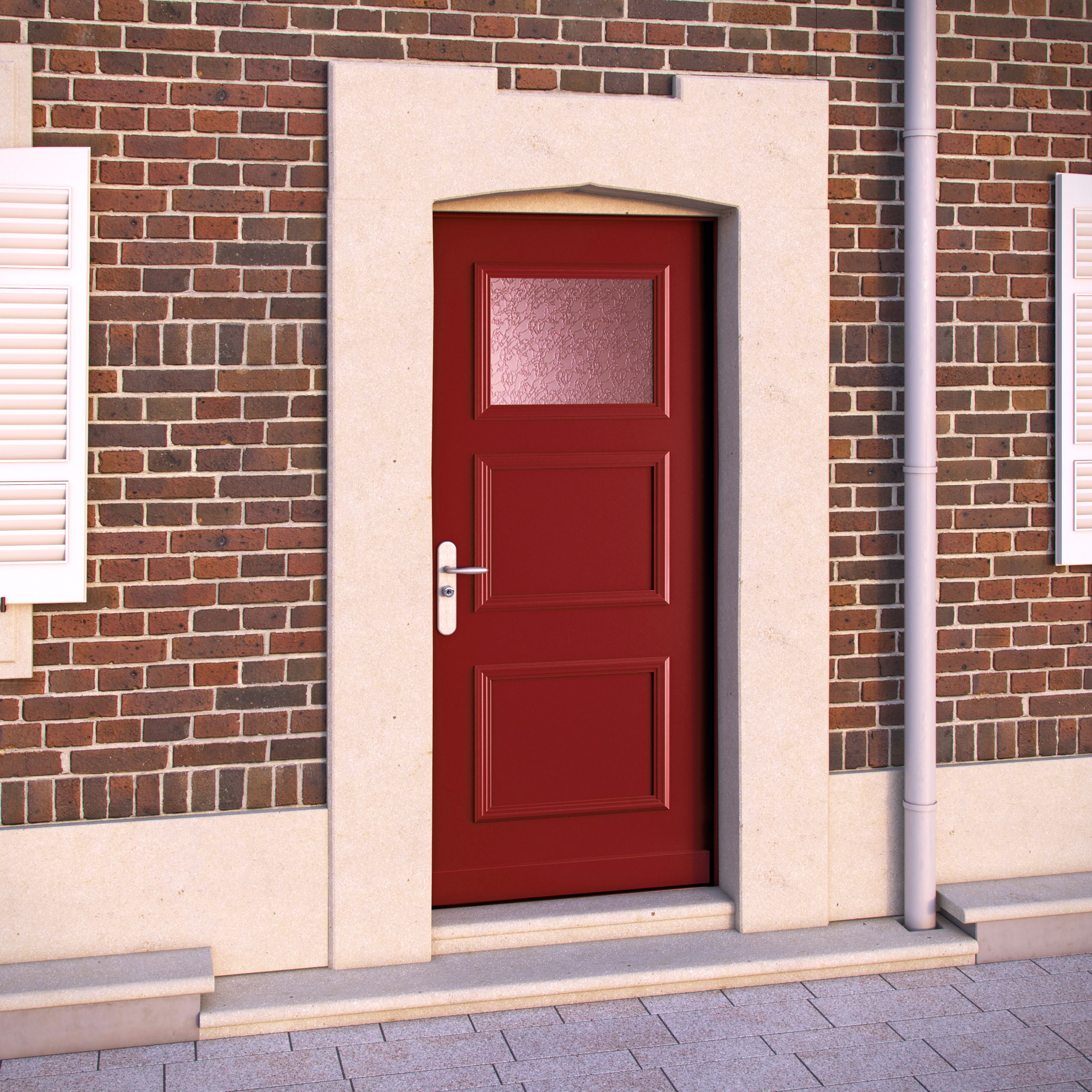 Porte blindée Fichet de maison modèle Forstyl+ S2L rouge avec deux tierces pleines rouges - Fichet